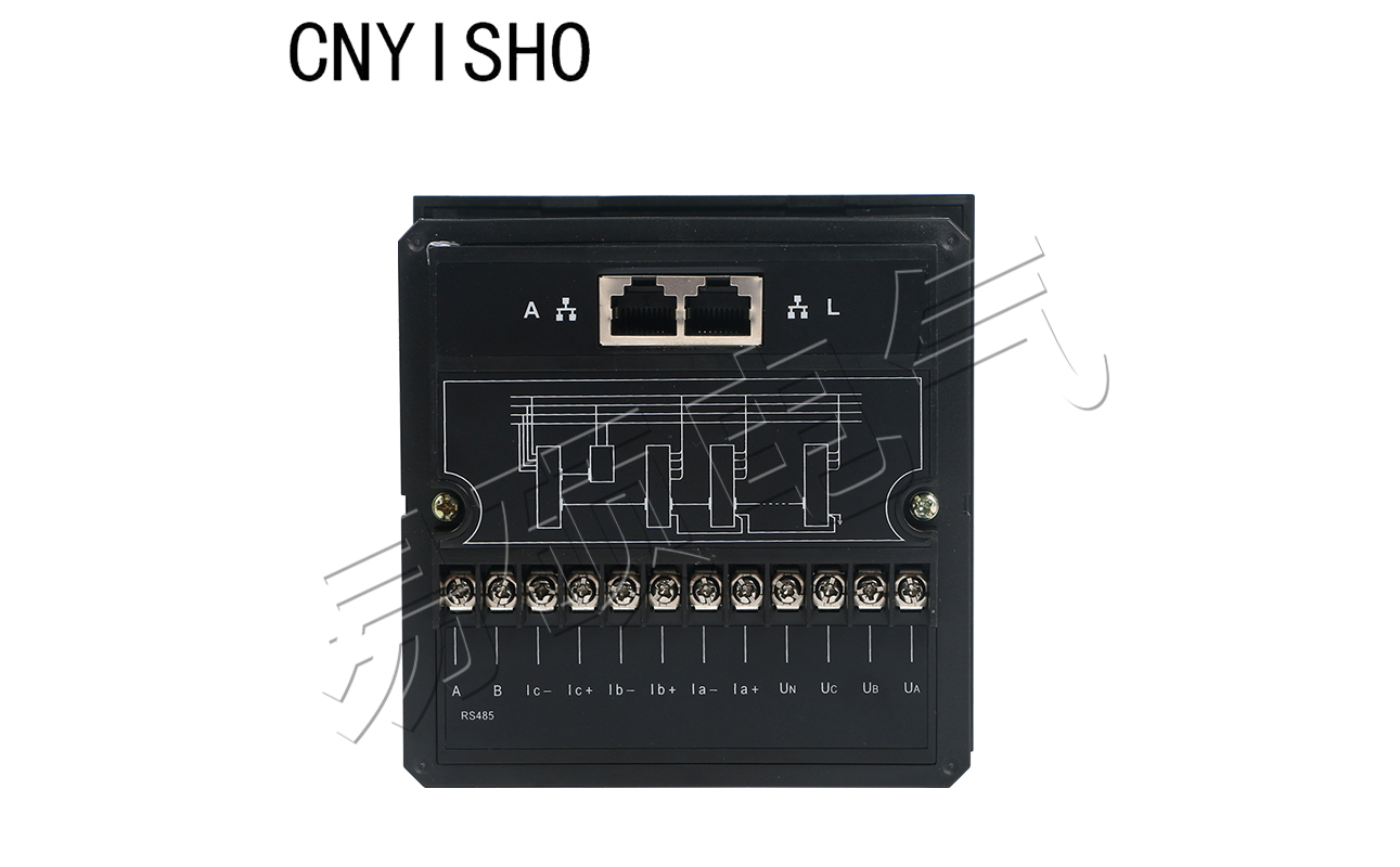 控制器安裝時,對照后面板電氣原理圖進行接線,具有接線方式: Ua, Ub, Uc分別接A, B, C三相電壓,Un接零線;la+、la-、1b+、Ib-、1c+、IC-分別接A, B, C,三相電流; A, B為備用485通信接口;RJ45接口A和L分別為控制器與電容器和控制器與指示器的通信接口;